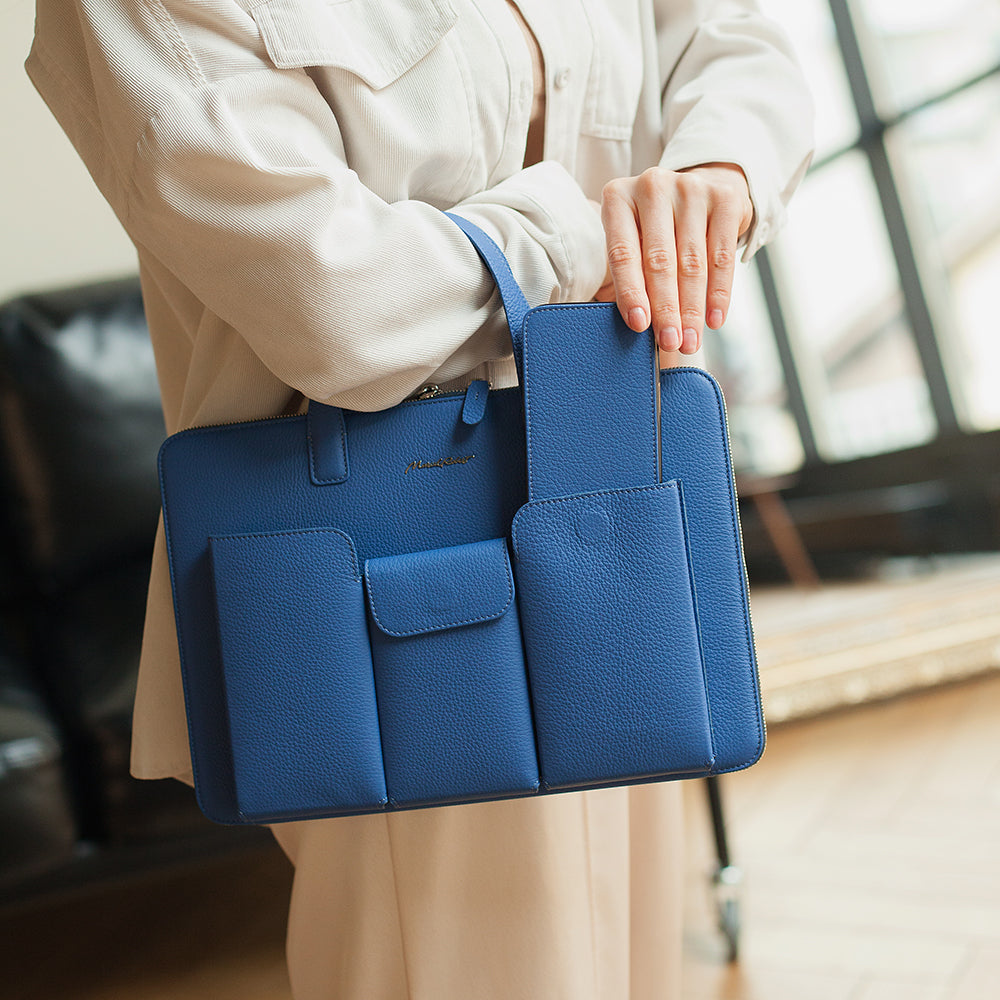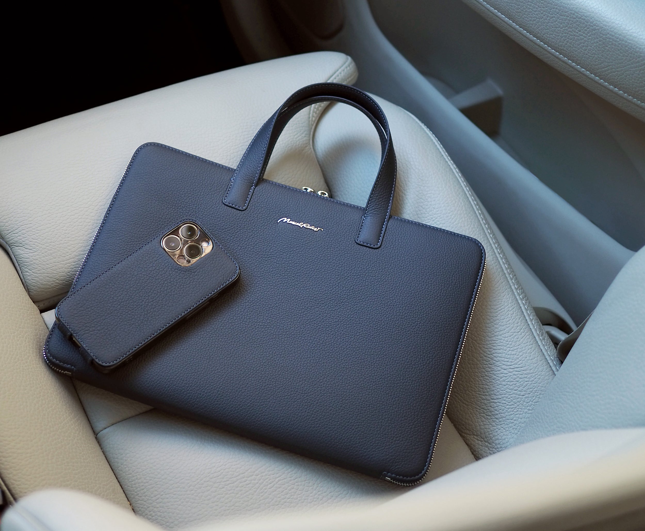Handcrafted slim leather laptop bags for 13–14 inch devices. French artisan craftsmanship meets minimalist business elegance. A luxury business leather bag designed for modern professionals who value precision and style.