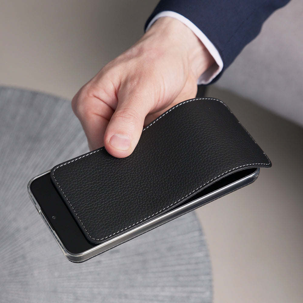 Entdecken Sie unsere iPhone Lederhüllen in den Ausführungen Leather Flip Case, Leather Wallet Case und Leather Cover Case, gefertigt aus Premium-Leder für schlanken Schutz und raffinierten Stil.